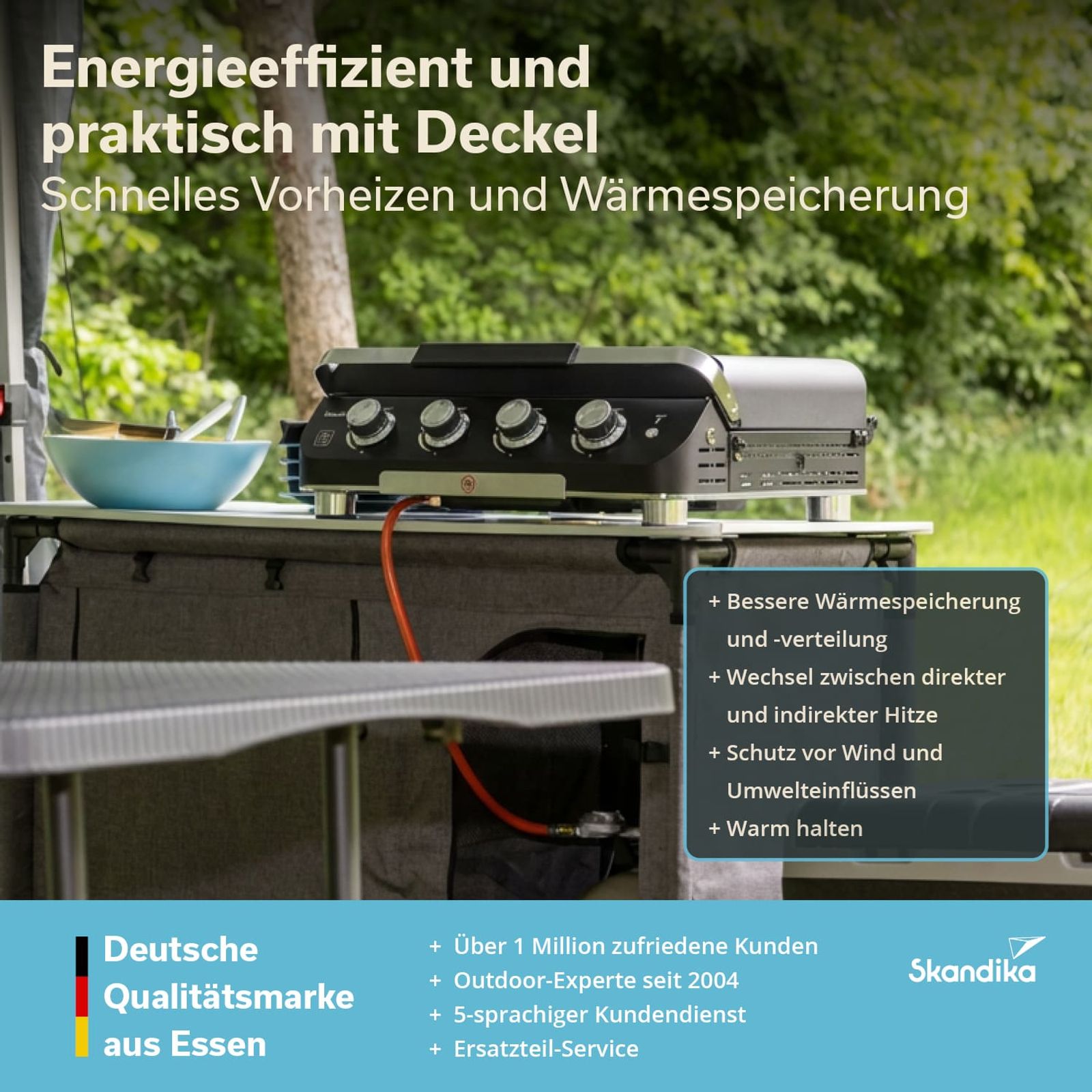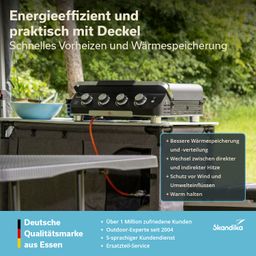 - Deckel für bessere Wärmespeicherung und schnelles Vorheizen