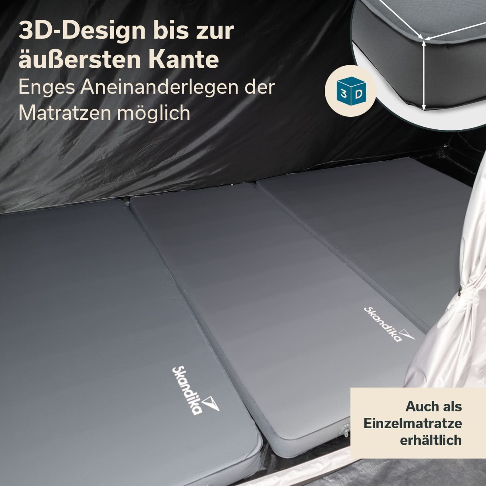 Das Skandika Isomatte Easy 3D Premium Flex Bundle vereint innovative Technologie mit luxuriösem Schlafkomfort für das ultimative Outdoor-Erlebnis. Bestehend aus der selbstaufblasenden Isomatte mit integrierter Pumpe und dem passgenau konzipierten Rundum-Bezug mit weich gepolsterter Oberfläche, bietet dieses Set eine perfekte Lösung für anspruchsvolle Camper und Gäste gleichermaßen. Ob beim Outdoor-Abenteuer oder in den eigenen vier Wänden, dieses Bundle beeindruckt durch müheloses Auf- und Abbauen, großzügigen Komfort und exzellente Isolierung.
