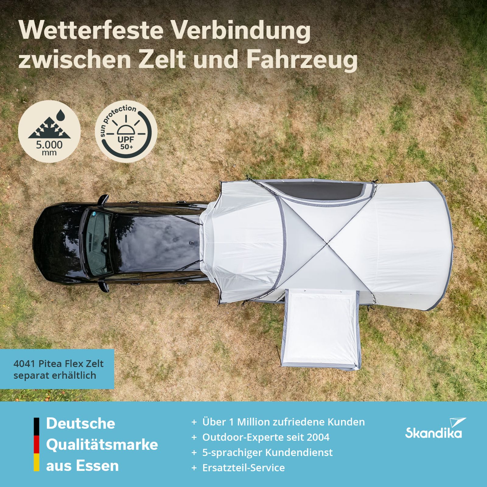 Die SUV-Schleuse wurde speziell als Erweiterung für das Skandika Kuppelzelt Pitea 4 Flex Protect (separat erhältlich) entwickelt – für maximale Anpassungsfähigkeit beim Campen.