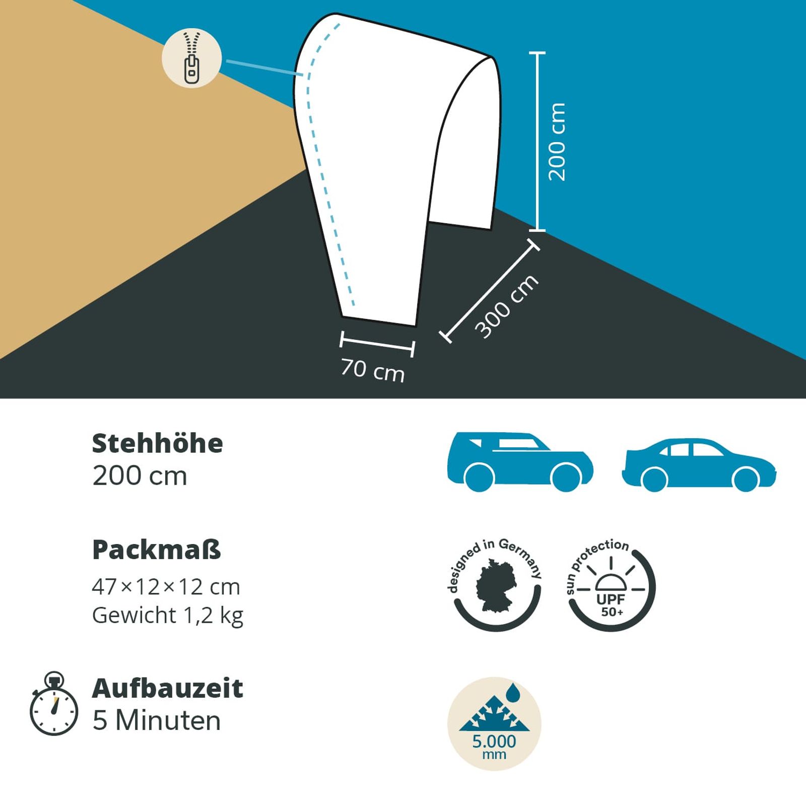 - Wettergeschützter Übergang zwischen Zelt und Auto
