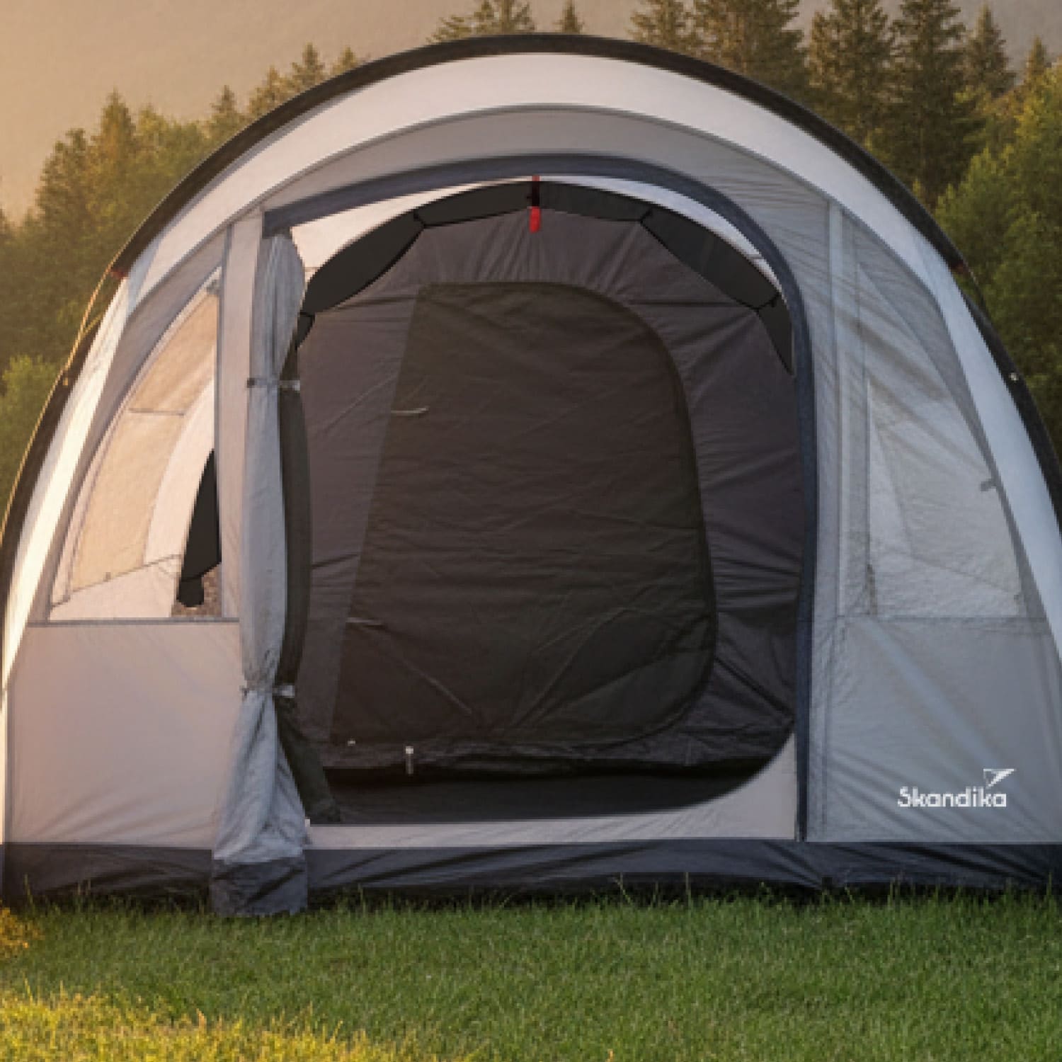 Der vollständig eingenähte Zeltboden bietet umfassenden Schutz vor Feuchtigkeit, Insekten und Zugluft. Zusammen mit Moskitonetzen an Haupteingang, Kabineneingang und den Fenstern entsteht ein durchdachtes Schutzsystem, das auch bei längeren Campingaufenthalten für trockenes und komfortables Wohnen sorgt.