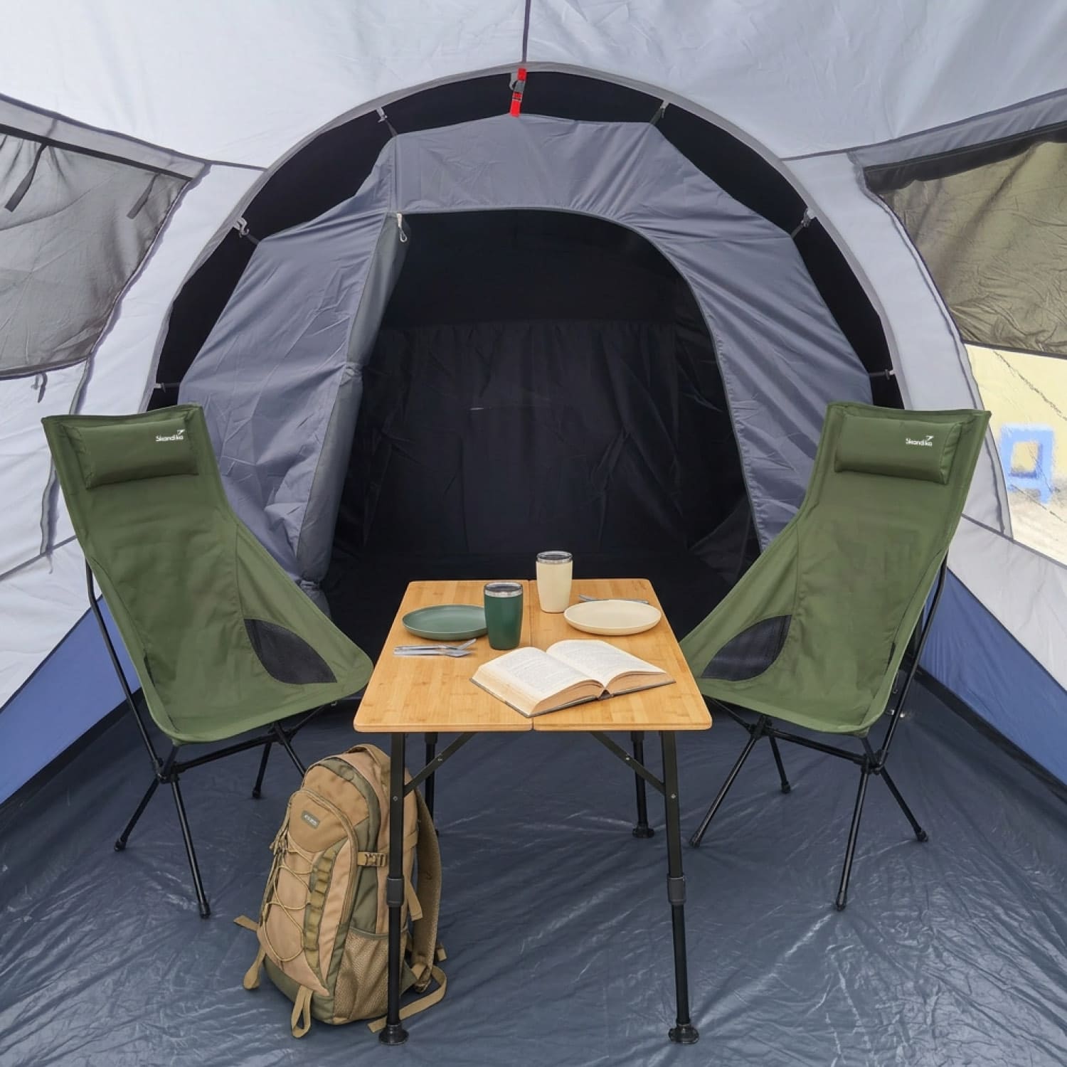 Im Dunkeln wird die Sicherheit durch reflektierende Abspannleinen erhöht, die das Zelt nachts gut sichtbar machen und Stolperfallen reduzieren. Die passenden Skandika Leinenspanner aus Aluminium ermöglichen präzises Spannen und einfaches Nachjustieren bei Bedarf. Ein durchdachtes Sicherheitskonzept.