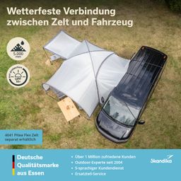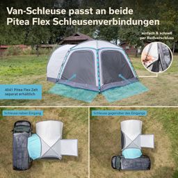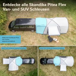 Die Van-Schleuse wurde speziell als Erweiterung für das Skandika Kuppelzelt Pitea 4 Flex Protect (separat erhältlich) entwickelt – für maximale Anpassungsfähigkeit beim Campen.
