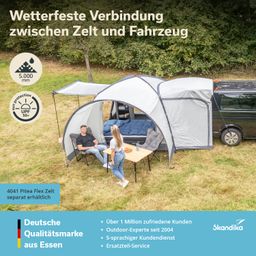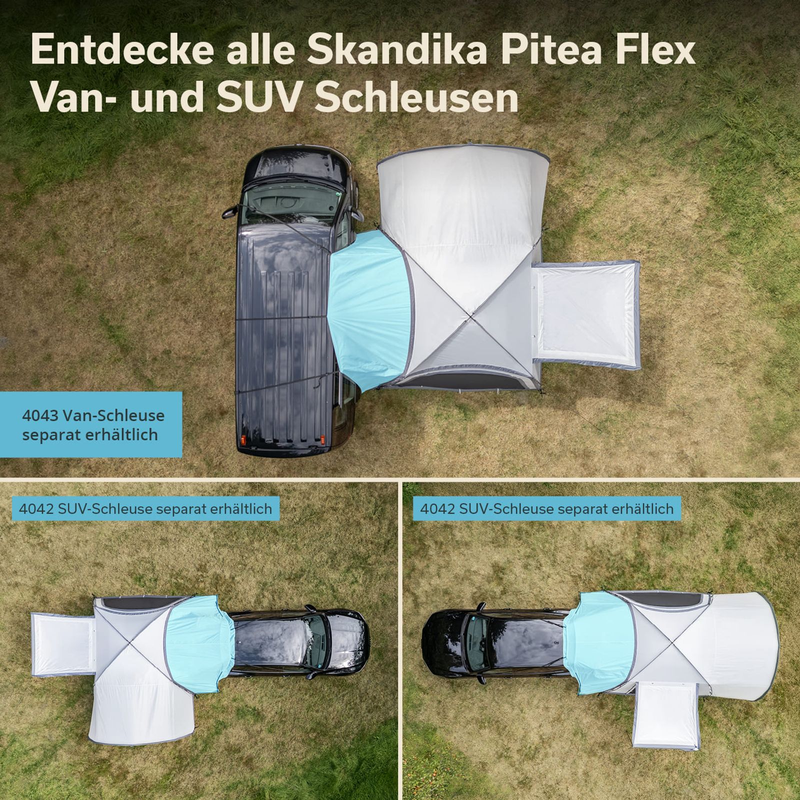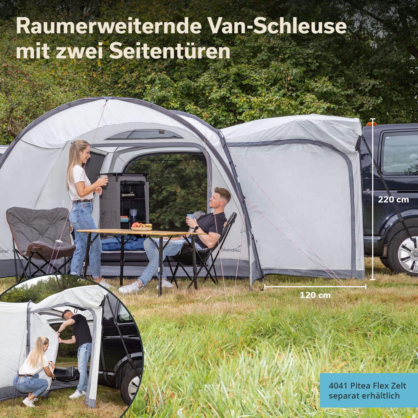 Die Van-Schleuse Plus wurde speziell als Erweiterung für das Skandika Kuppelzelt Pitea 4 Flex Protect (separat erhältlich) entwickelt – für maximale Anpassungsfähigkeit beim Campen.