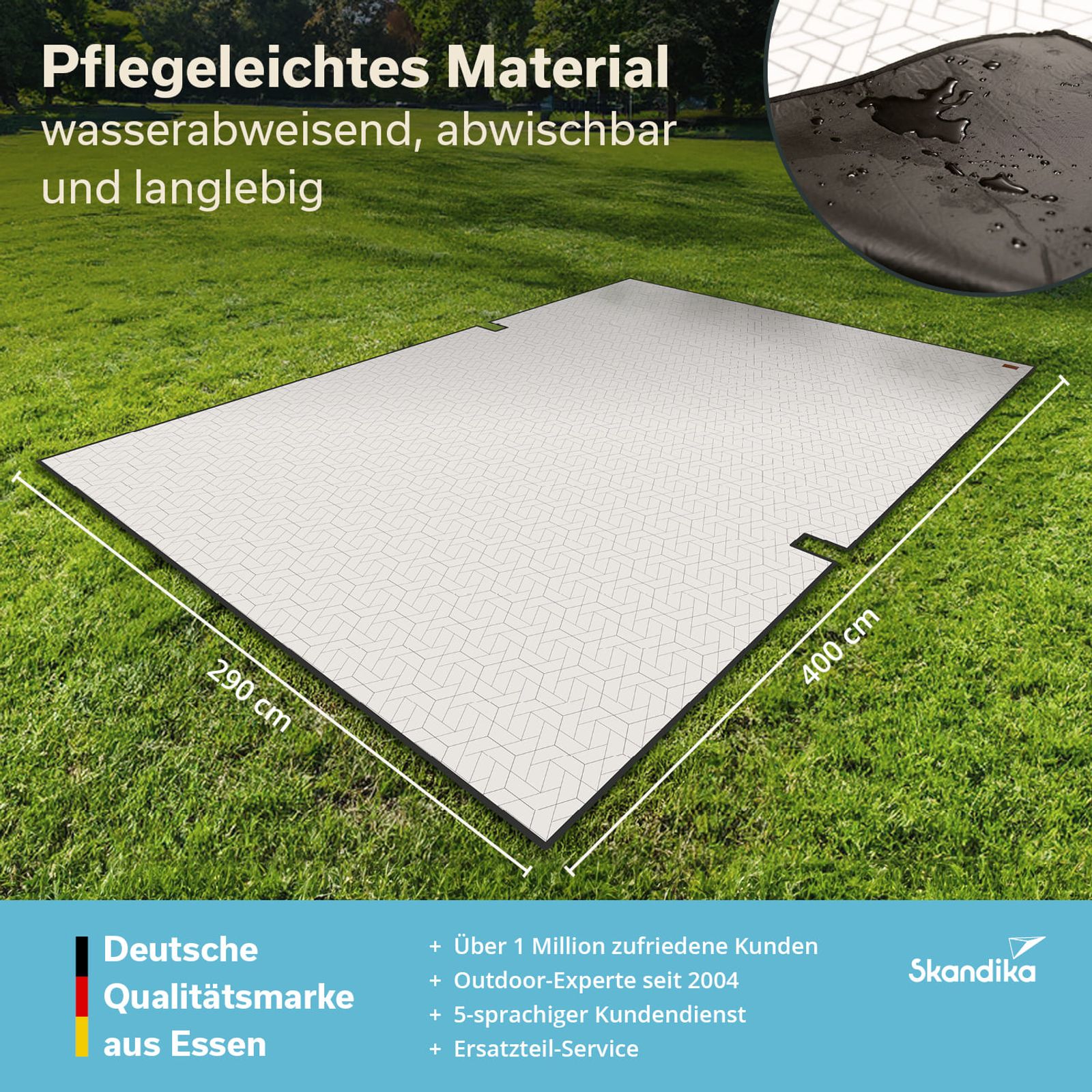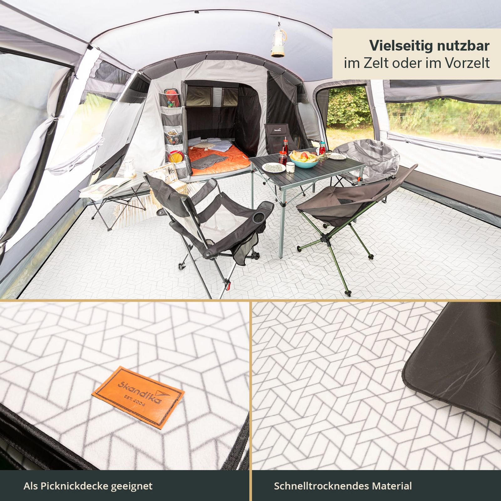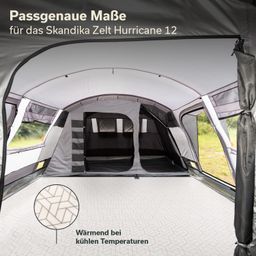 - Mit Aussparungen passend für den Wohnbereich des Skandika Hurricane 12 Zeltes