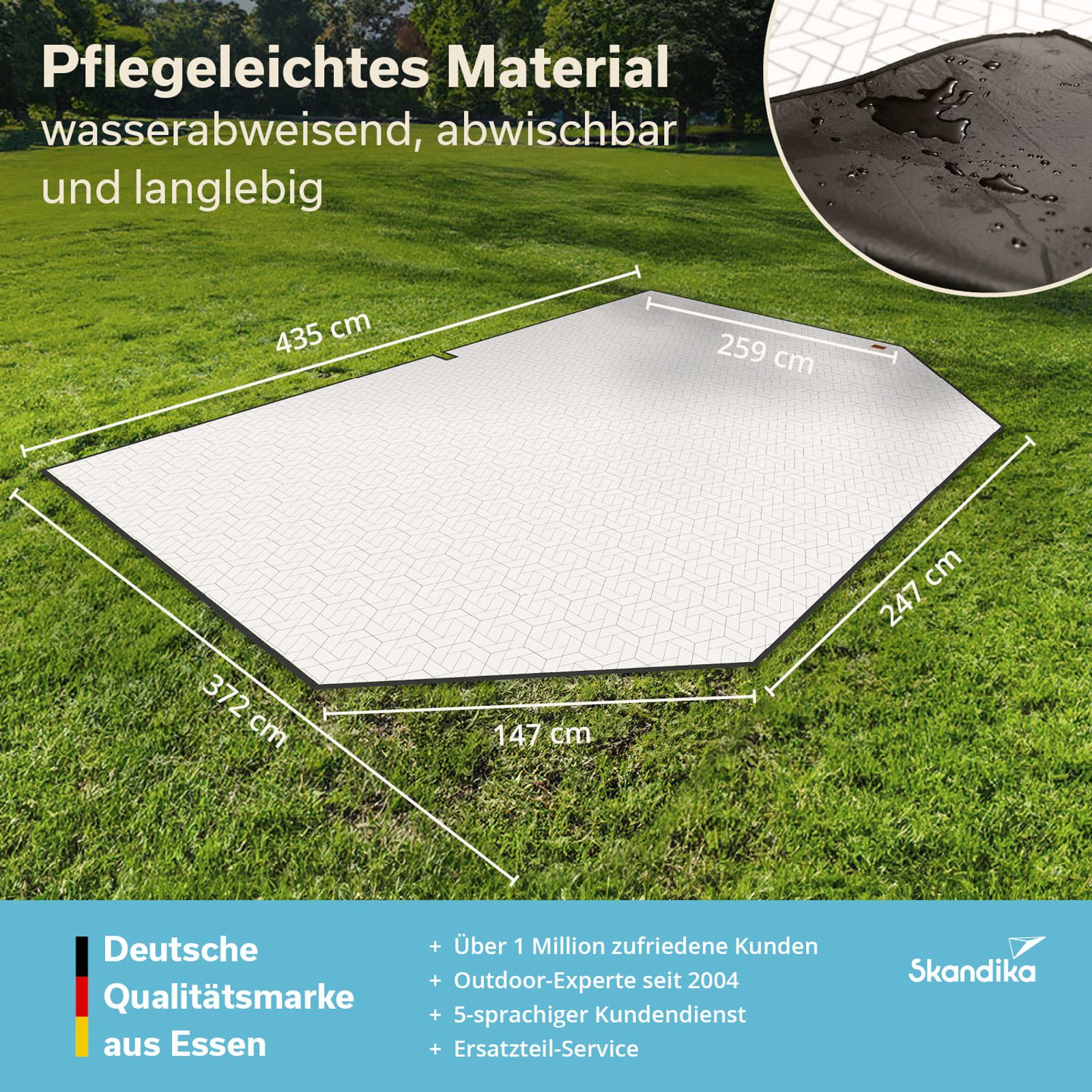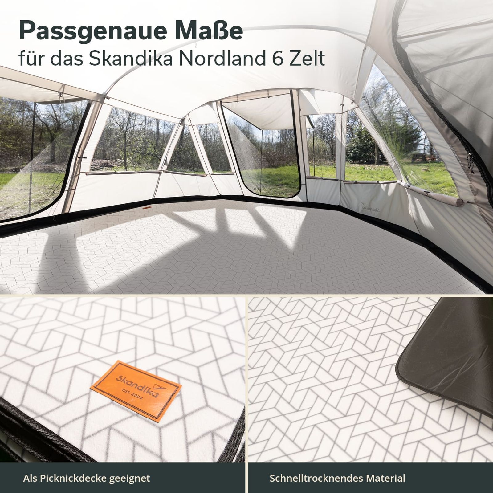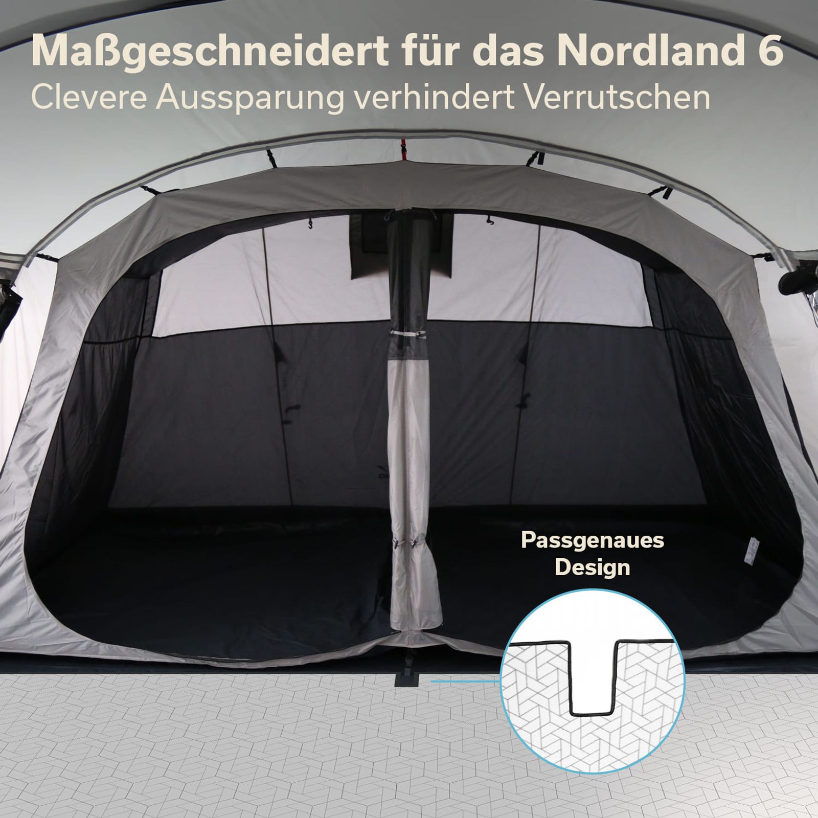 - Mit Aussparungen passend für den Wohnbereich des Skandika Nordland 6 Zeltes